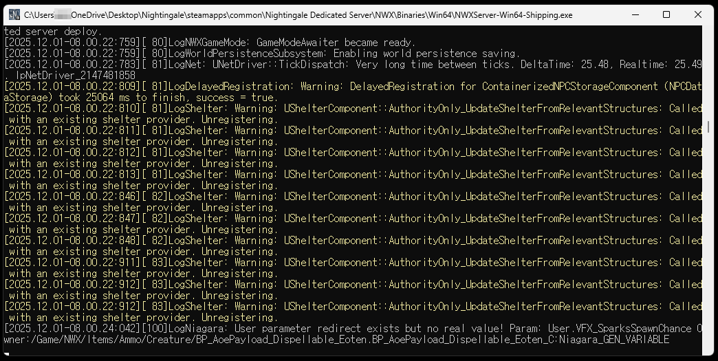 | 리눅스 | ~/Steam/steamapps/common/Nightingale\ Dedicated\ Server/NWX/Config |