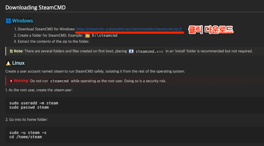 SteamCMD 다운로드