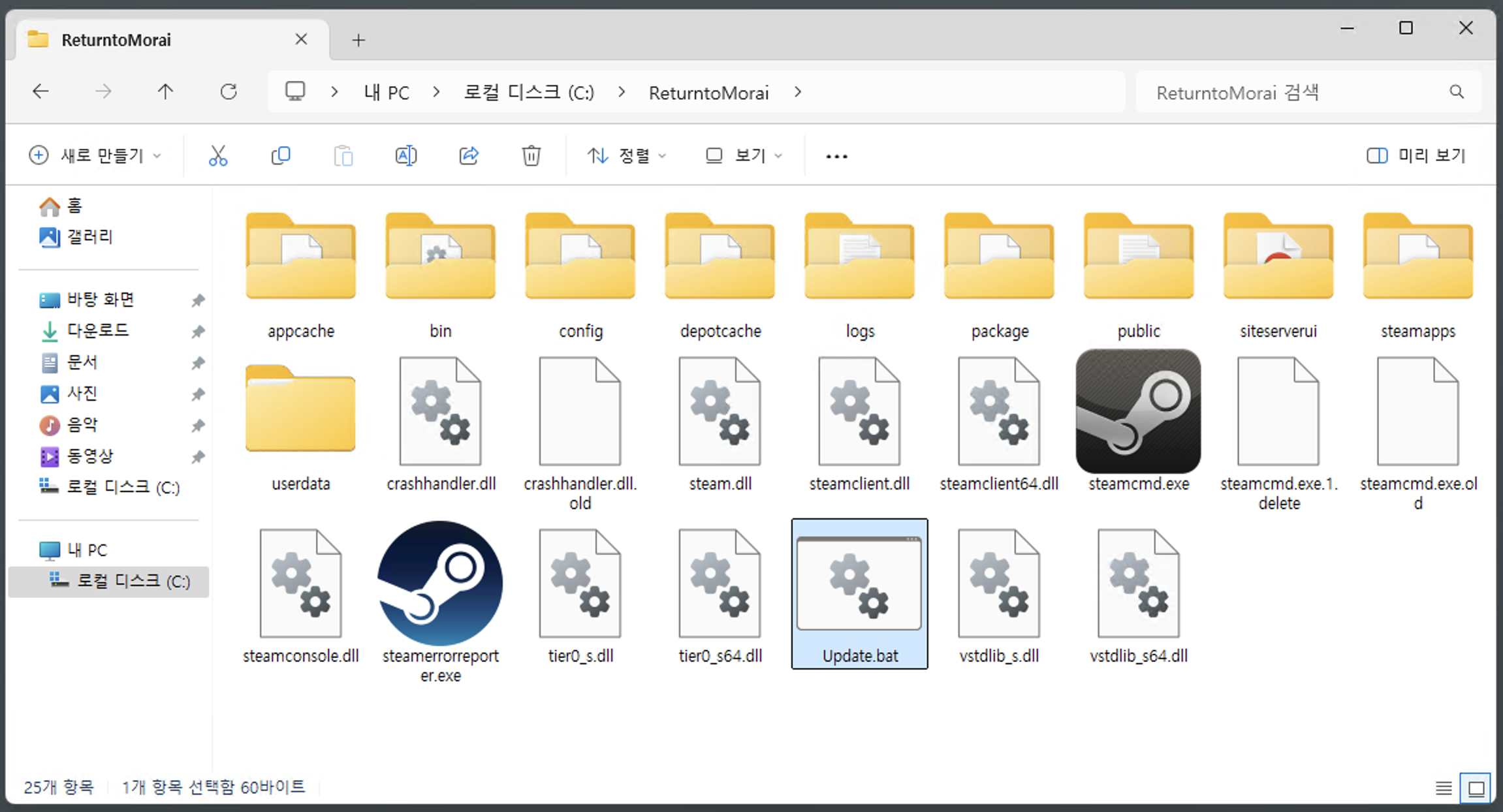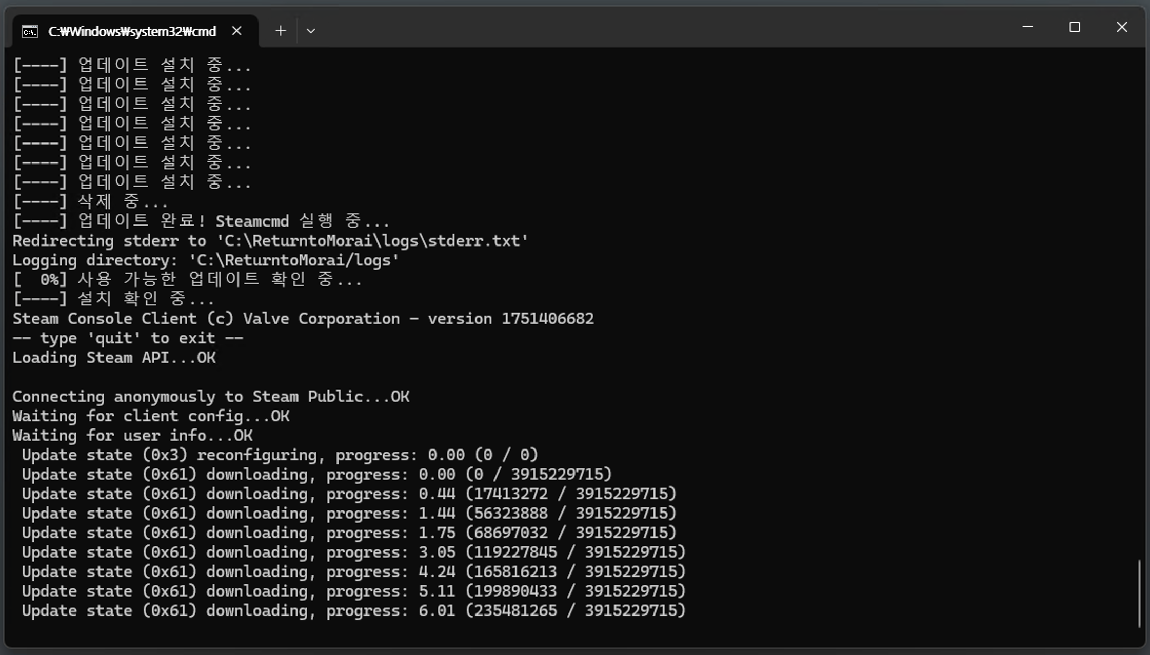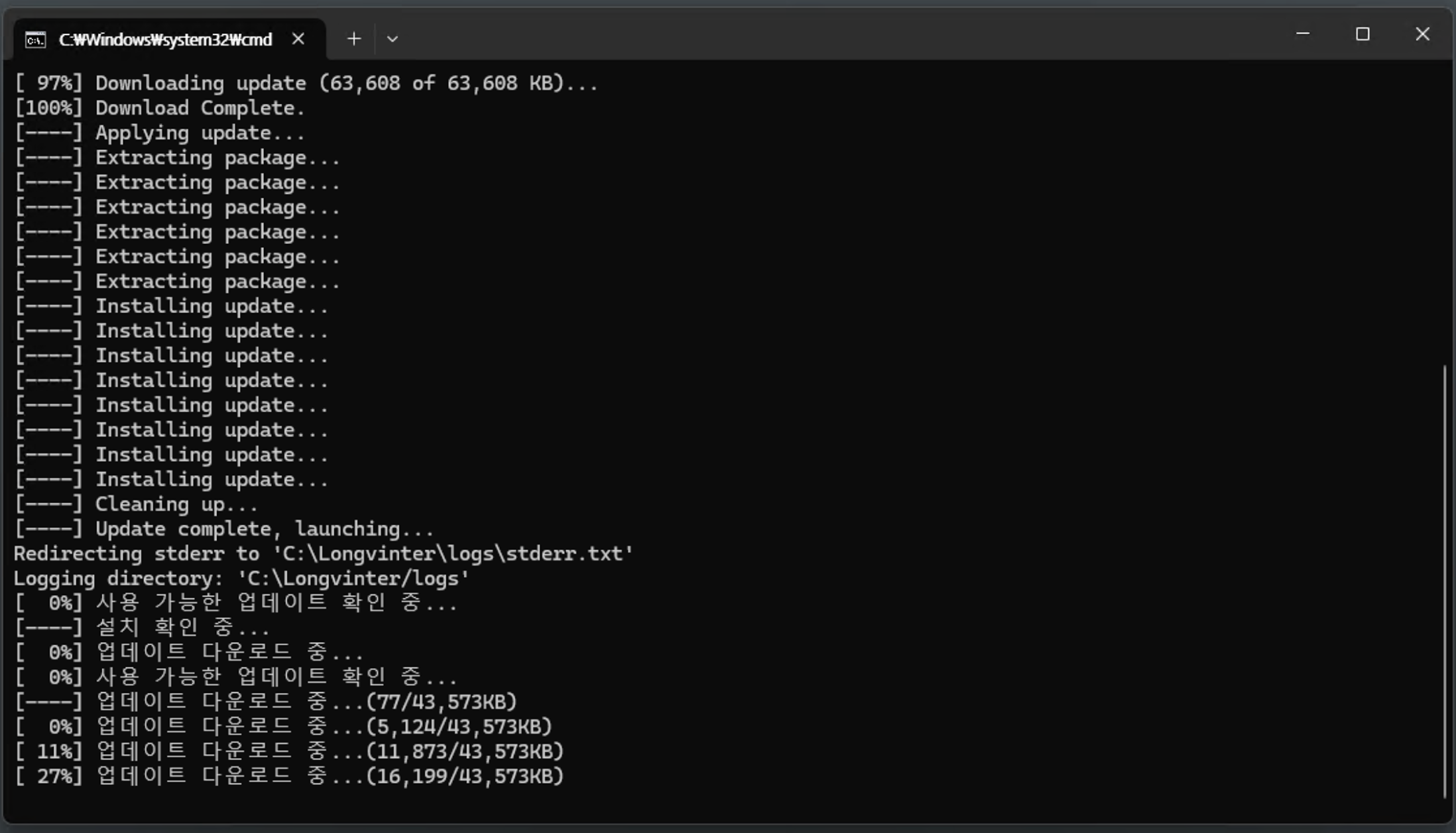 update.bat 파일 수행 → 서버 파일 다운로드 완료