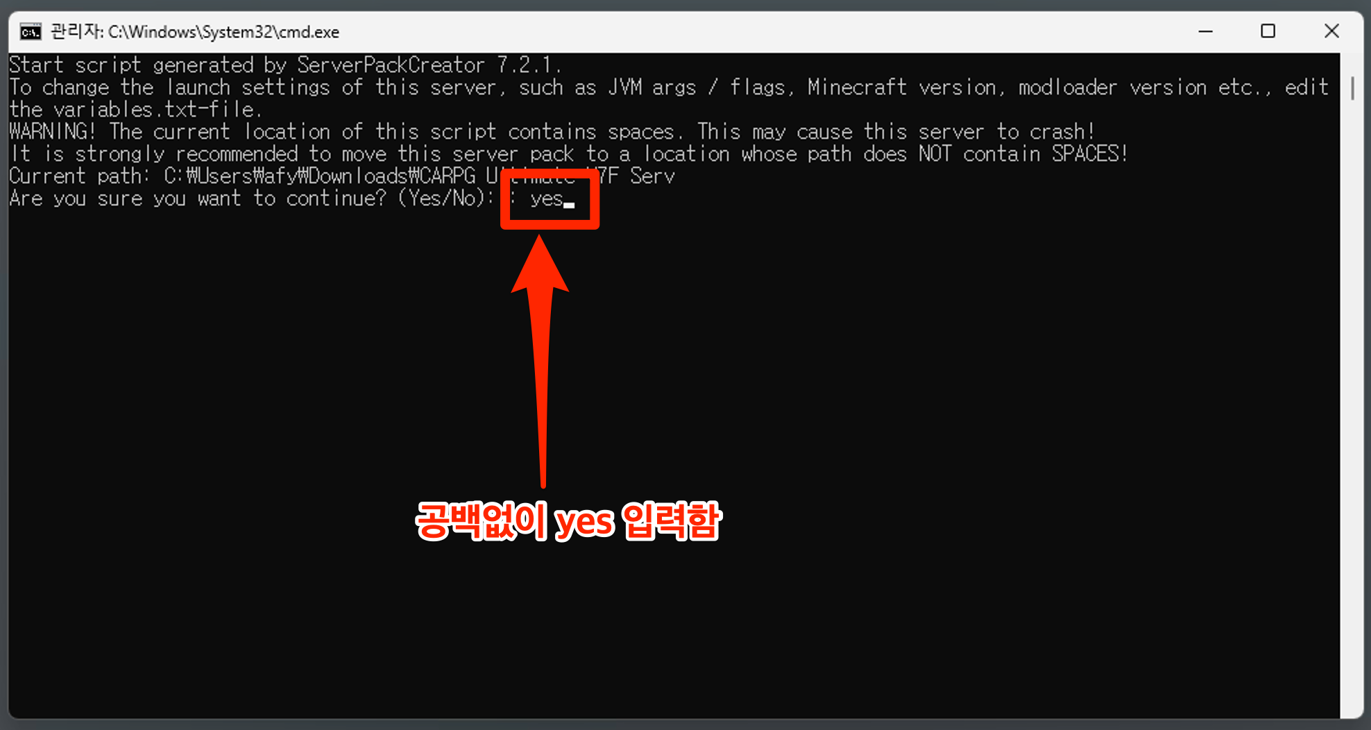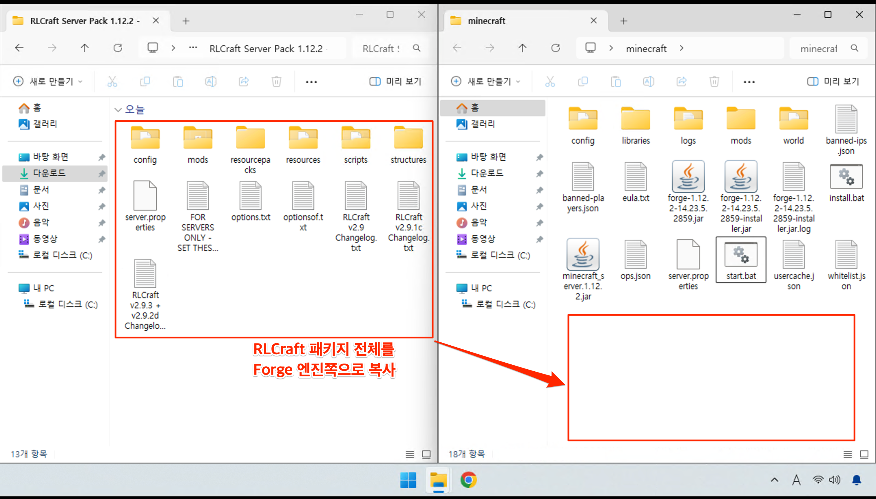 서버 설치 → start.bat 파일 실행 (관리자 권한)