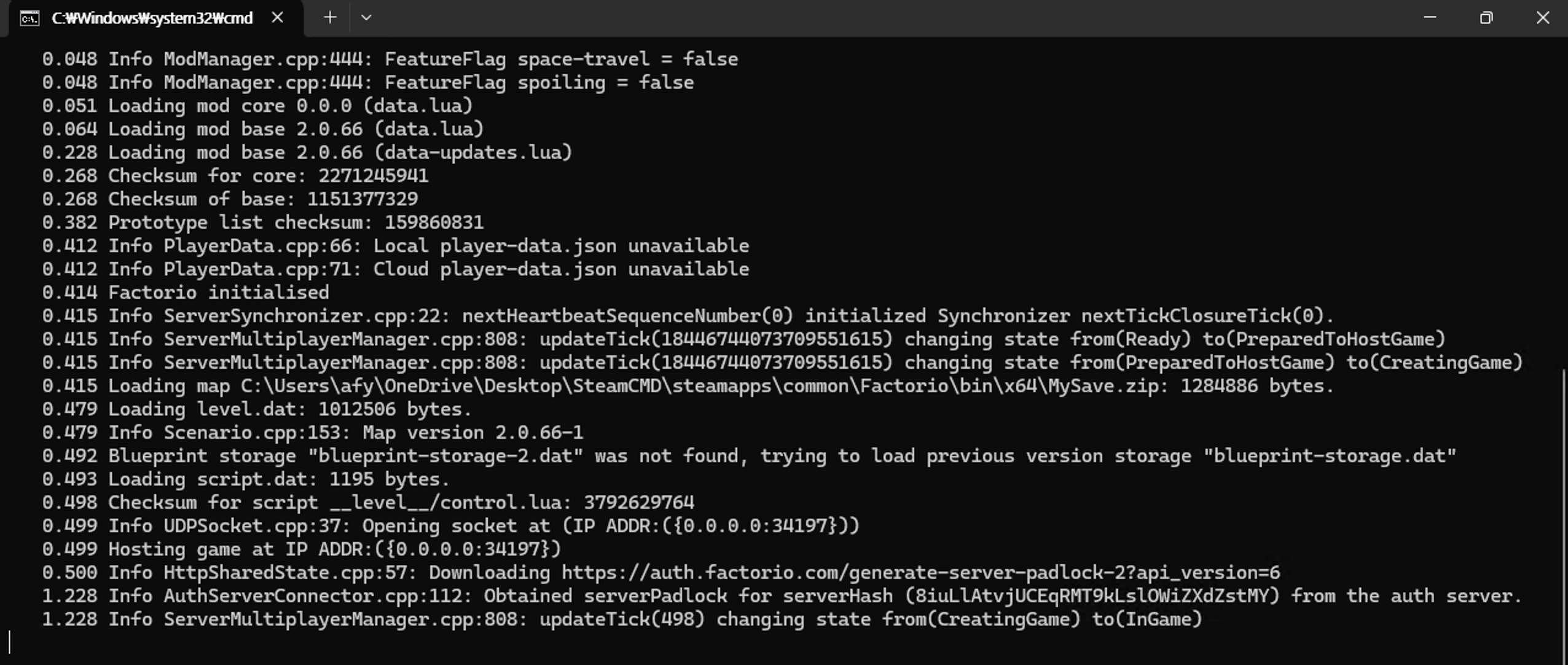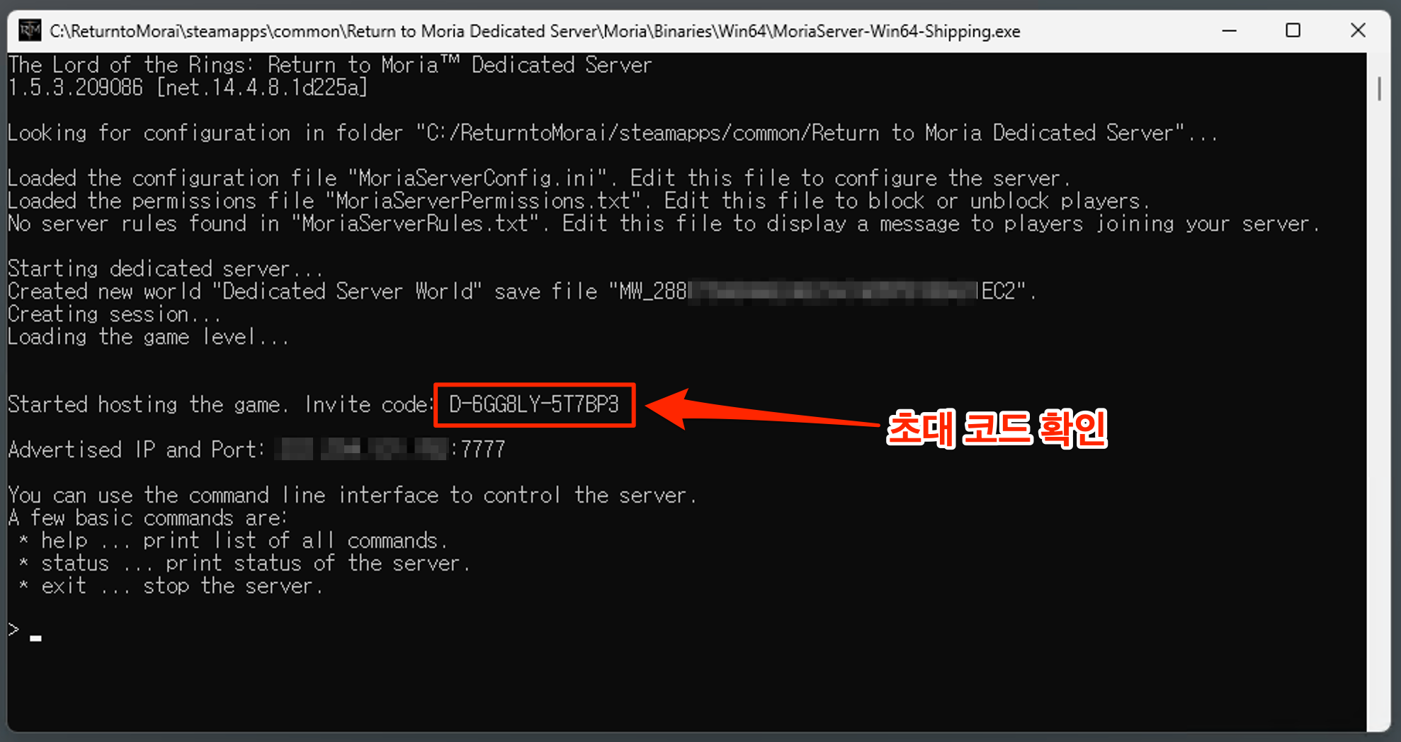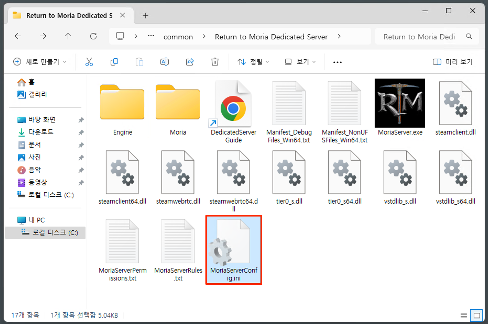 MoriaServerConfig.ini 파일 생성 확인