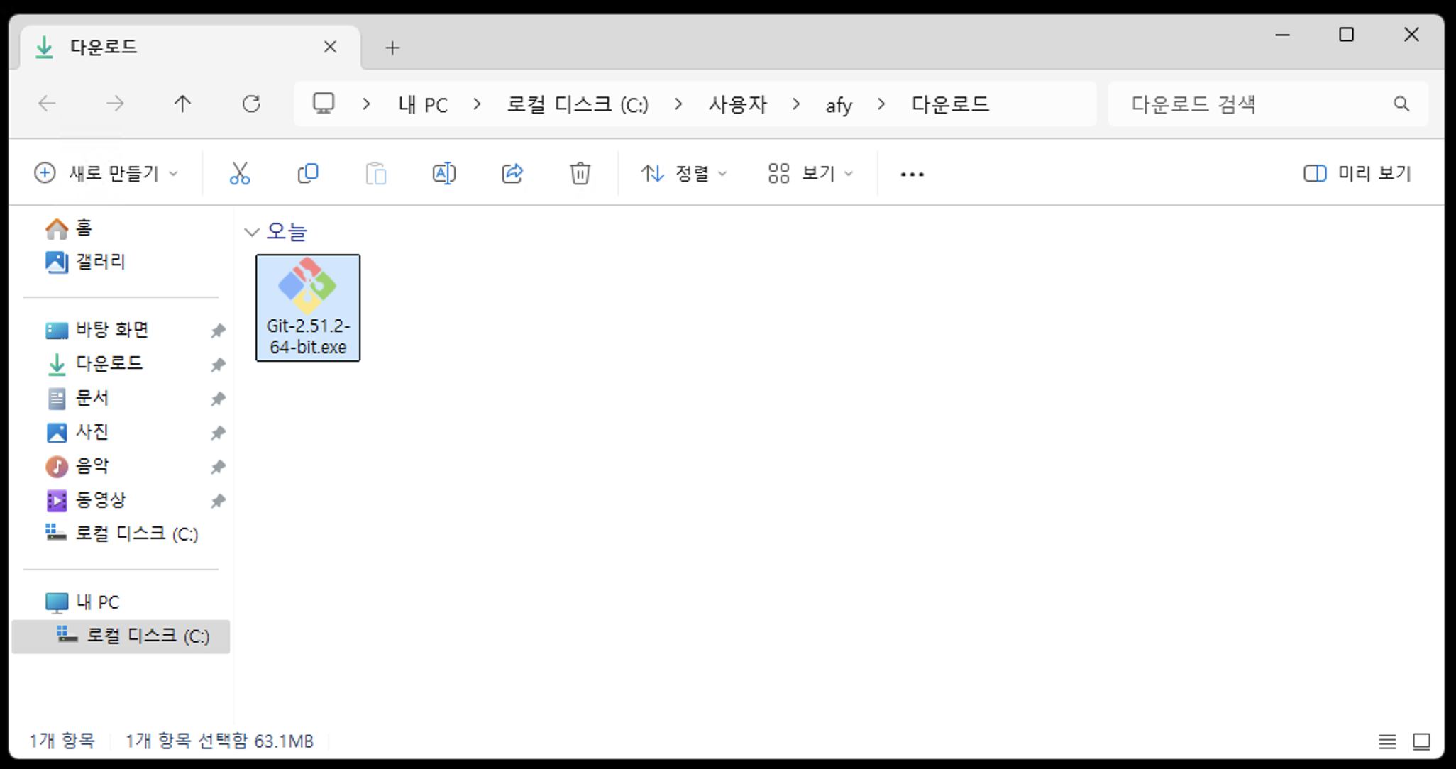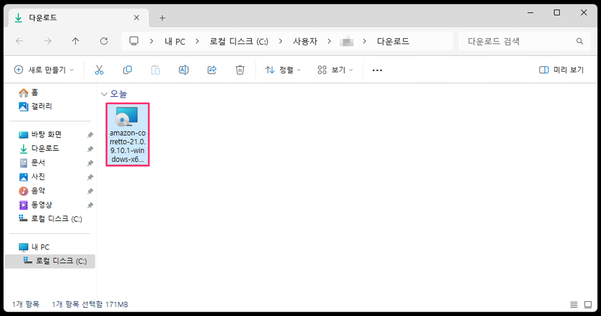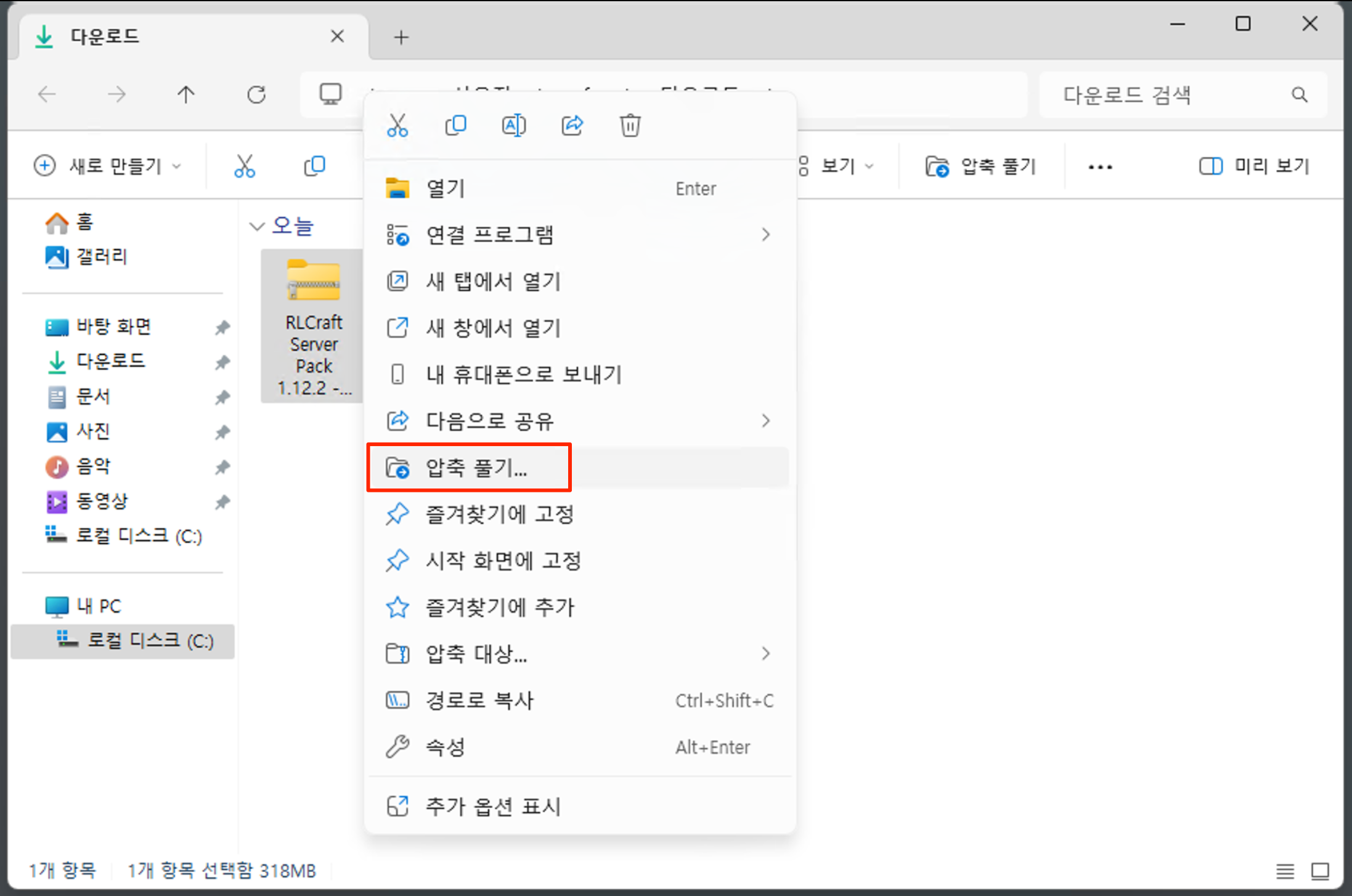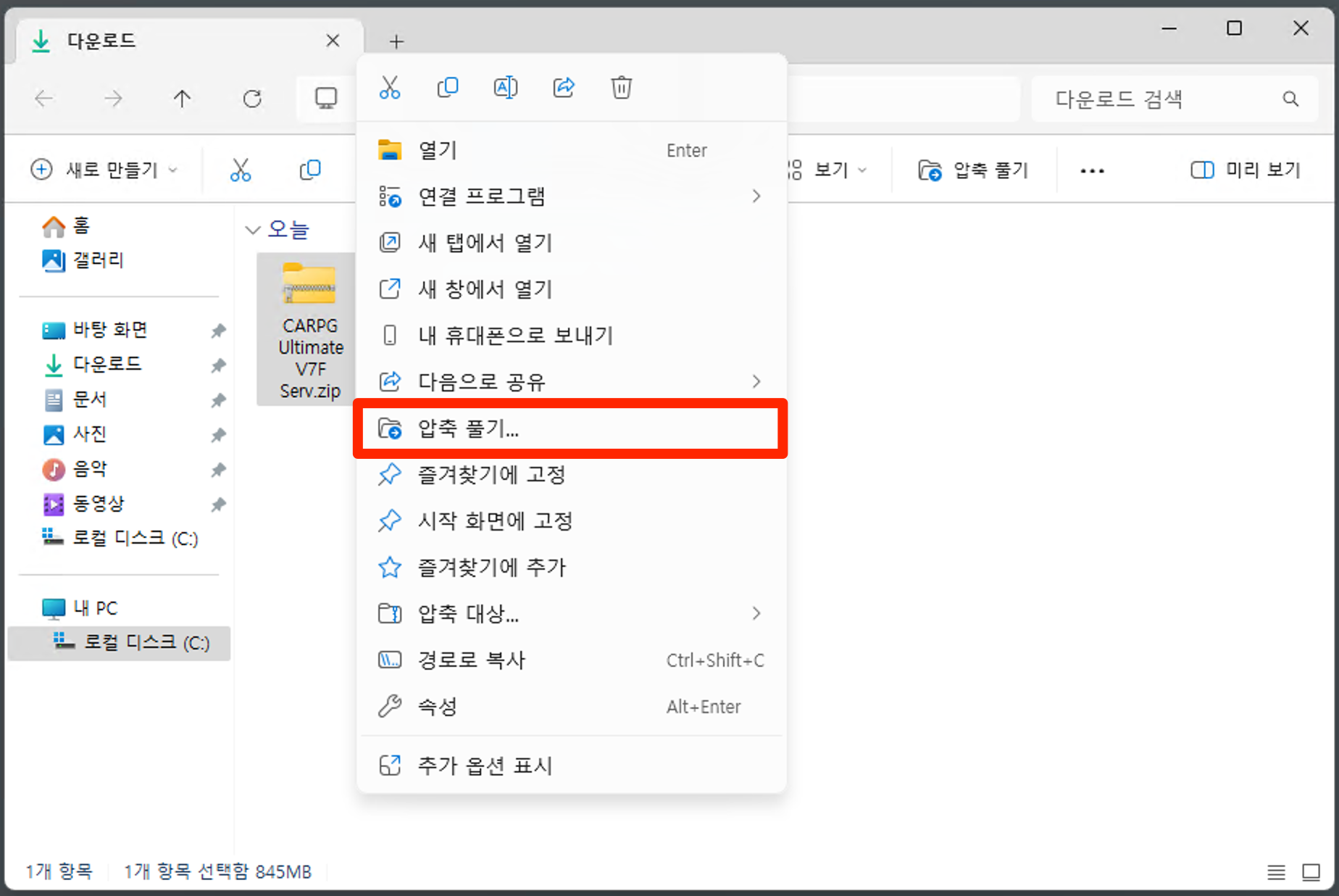 다운로드 Zip 파일 압축 해제