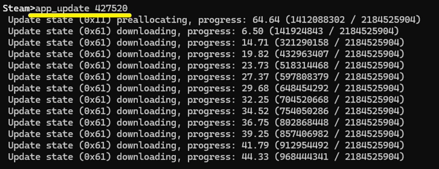 steamcmd +login anonymous +app_update 3796810 validate +quit