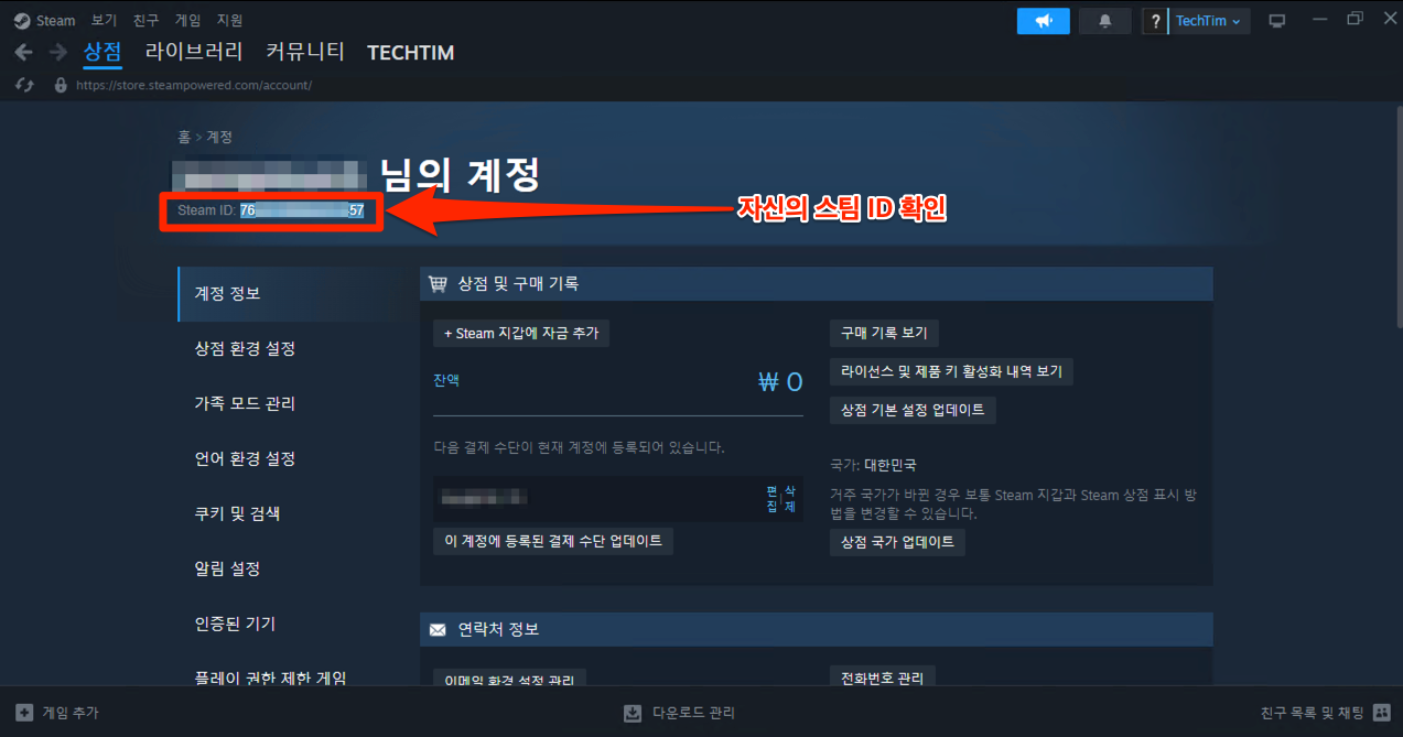 관리자 등록을 위한 자신의 SteamID (번호)는 어디서 확인할 수 있나요 ?