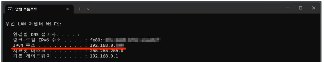 터미널에 ipconfig 라는 명령어를 실행