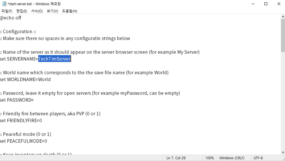 | set PRIVATE | 서버를 공개/비공개 운영 ( 0 = 공개, 1 = 비공개 ) |