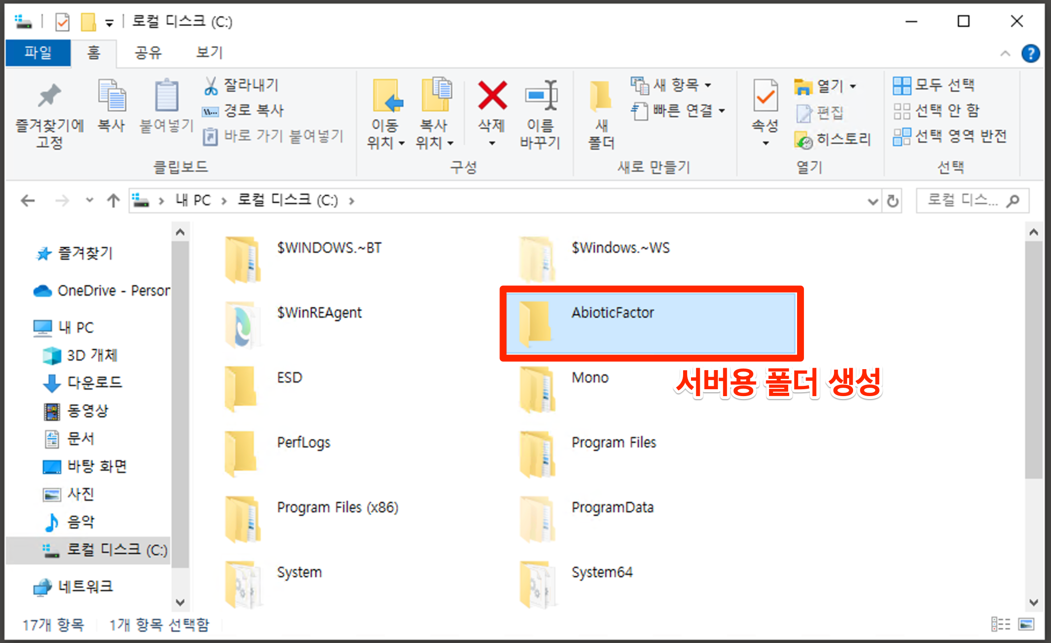 - 가급적 C:\ 최상단 , D:\ 최상단을 선택하여 폴더를 만듭니다.