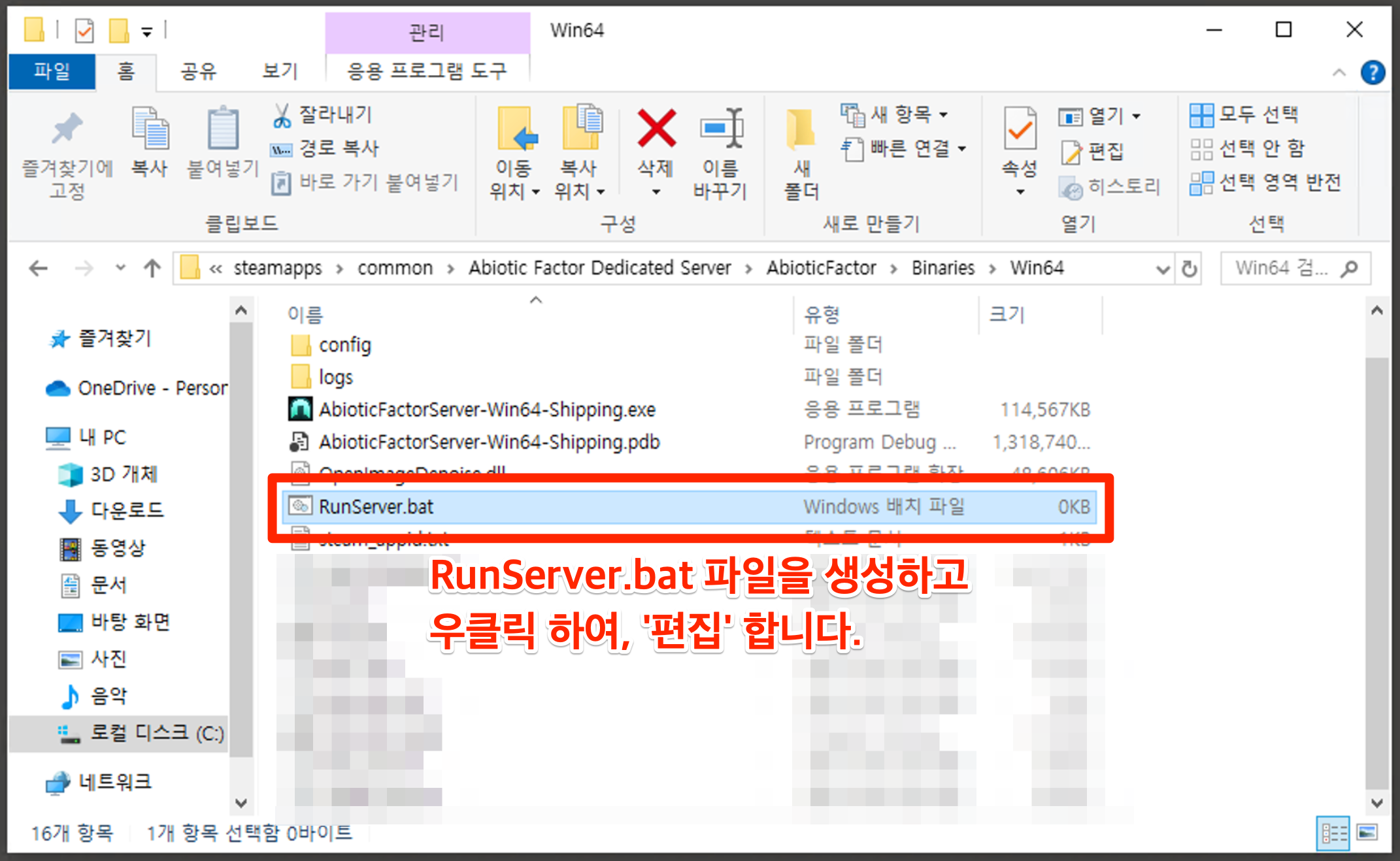 - 텍스트 파일을 2개 만들고 각각 Install.bat, RunServer.bat 로 이름을 변경합니다.