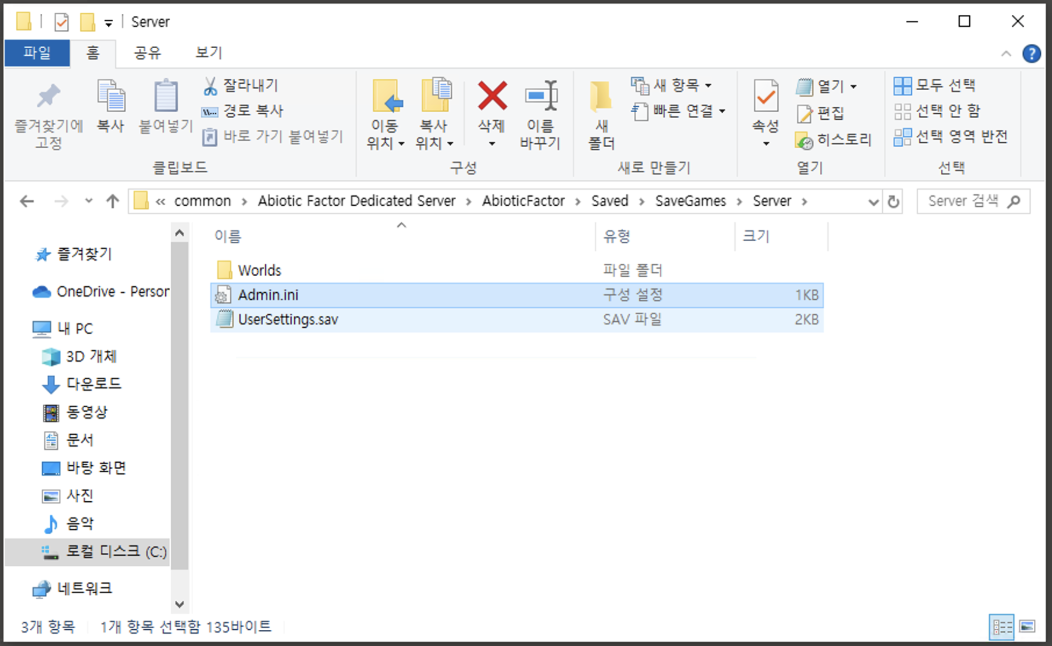 {서버디렉토리}\steamapps\common\Abiotic Factor Dedicated Server\AbioticFactor\Saved\SaveGames\Server\Admin.ini