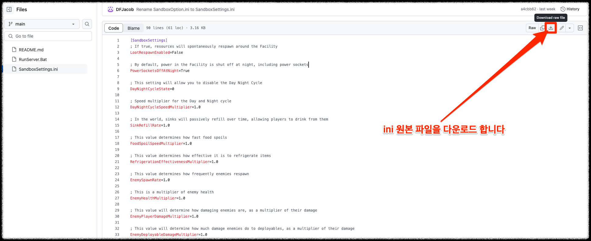 - 공식 사이트에서 SandboxSetting.ini 파일을 다운로드 합니다 : 링크이동