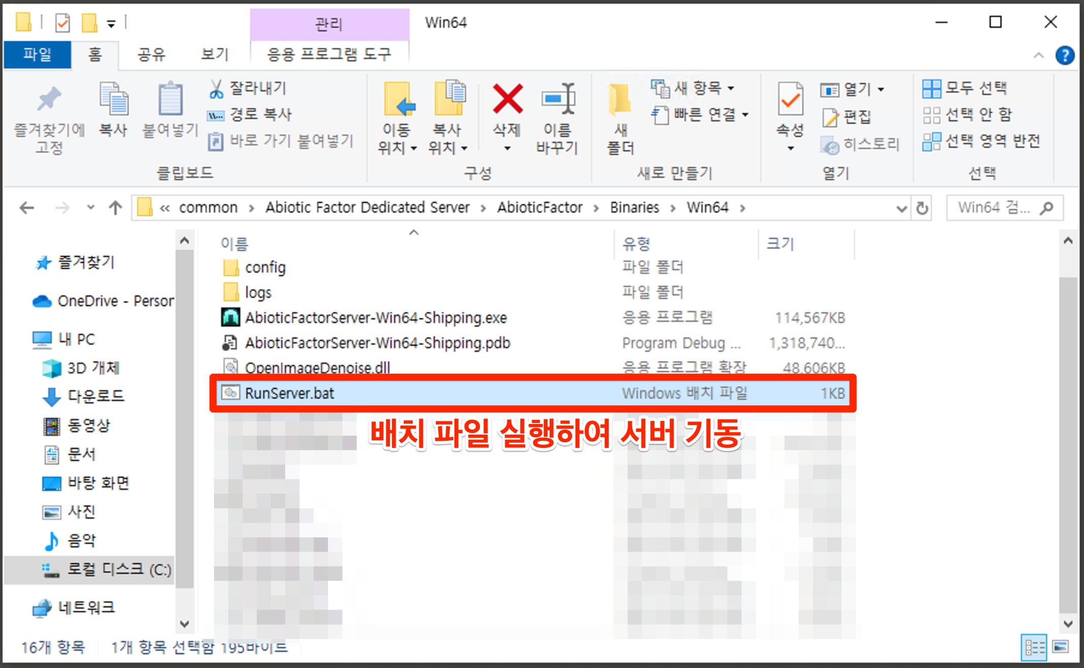 - RunServer.bat 파일을 더블클릭하여 서버를 기동합니다.