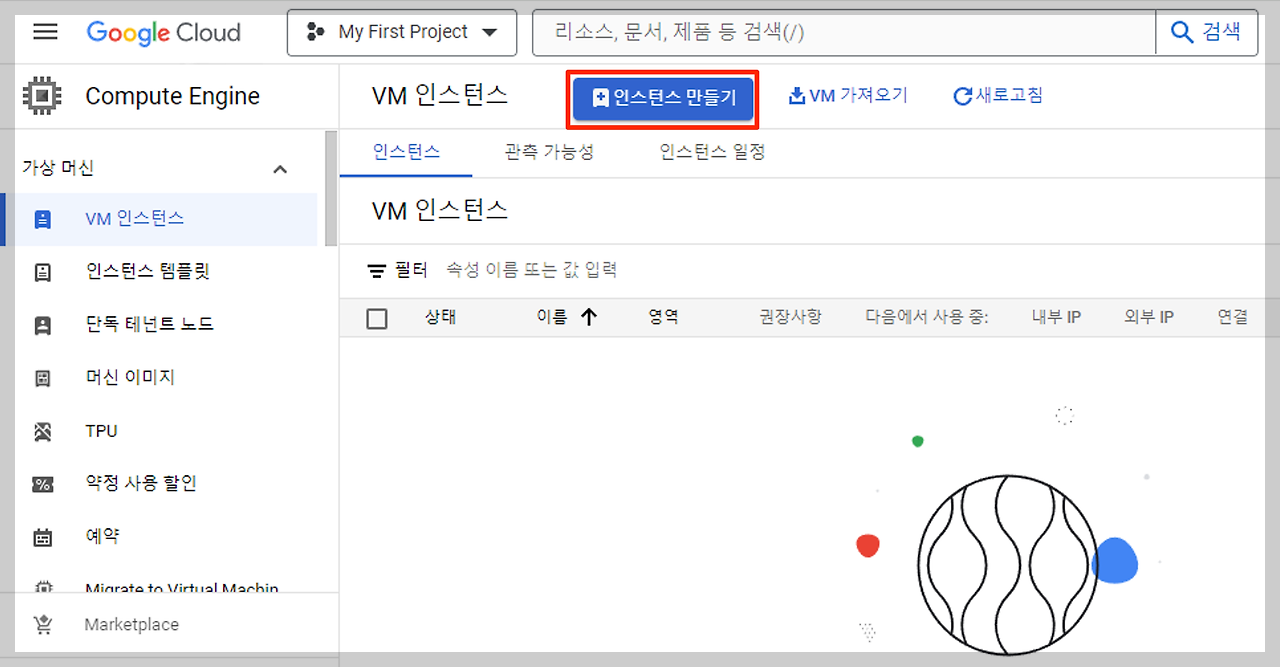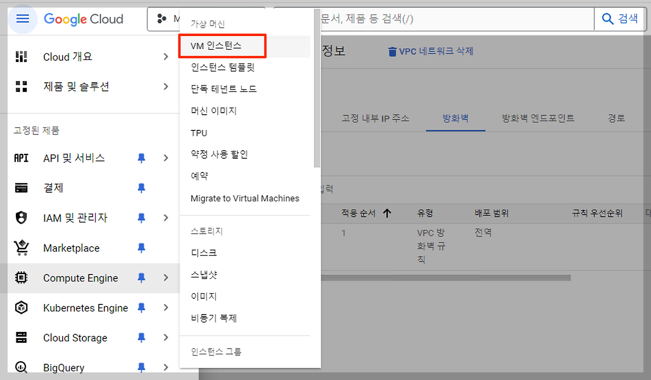 'Compute Engine' → 'VM 인스턴스' 로 접근