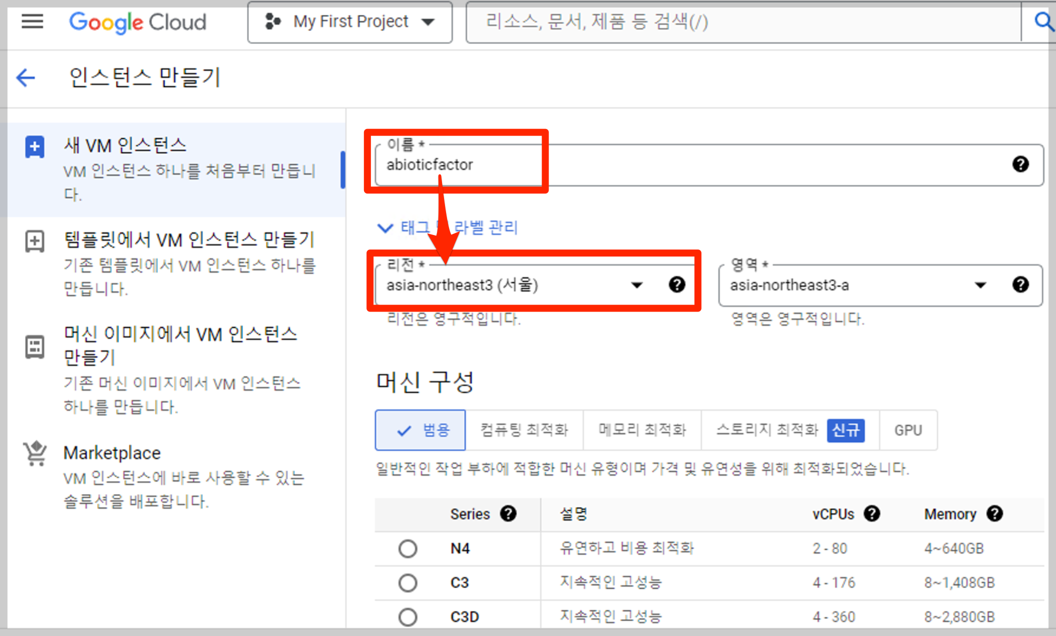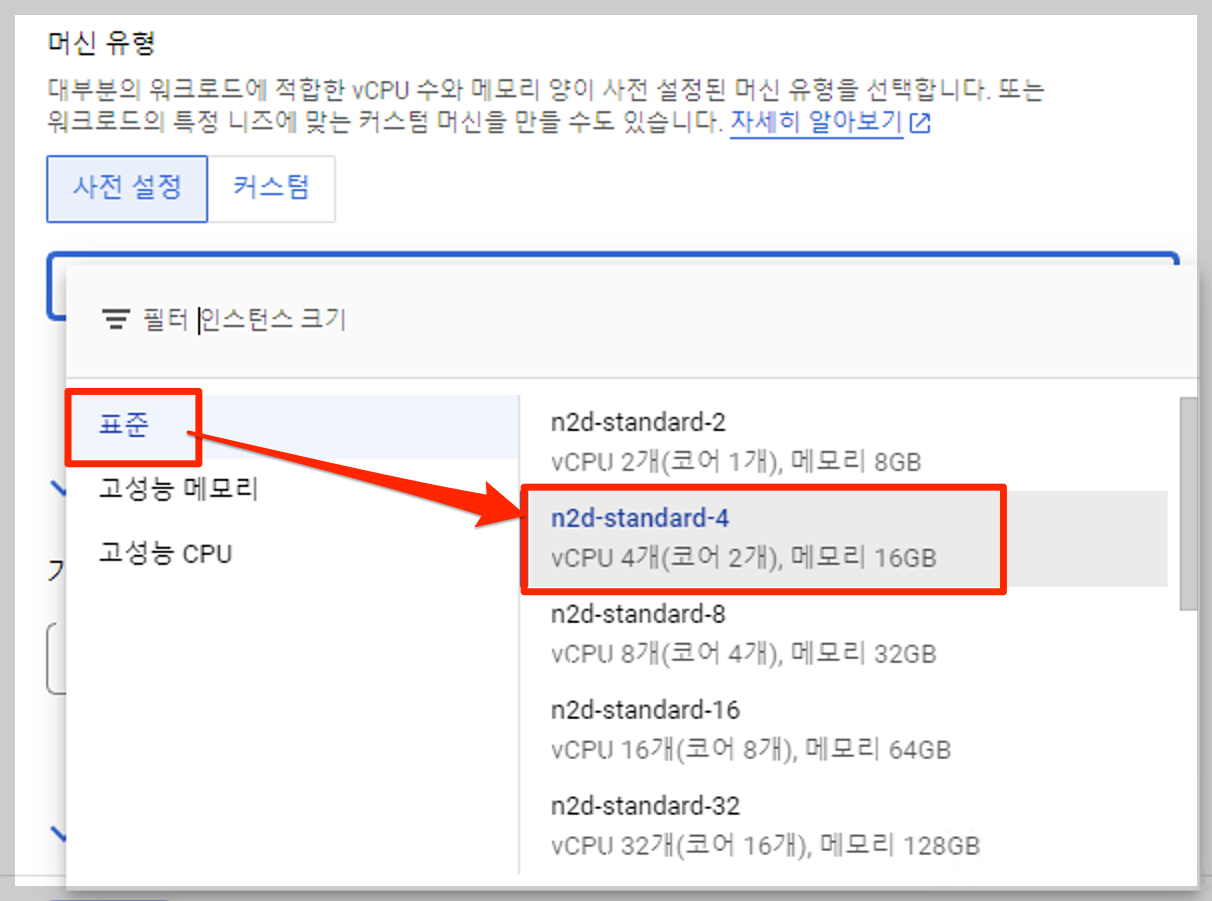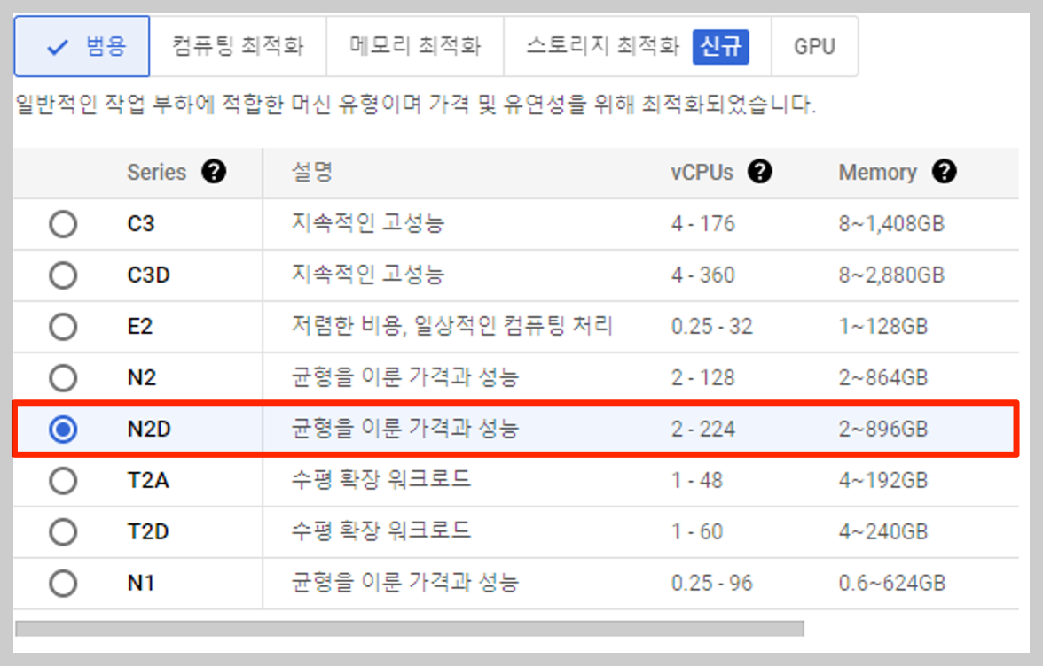 본 데모에서는 가성비 모델 'N2D'를 선택 했습니다.