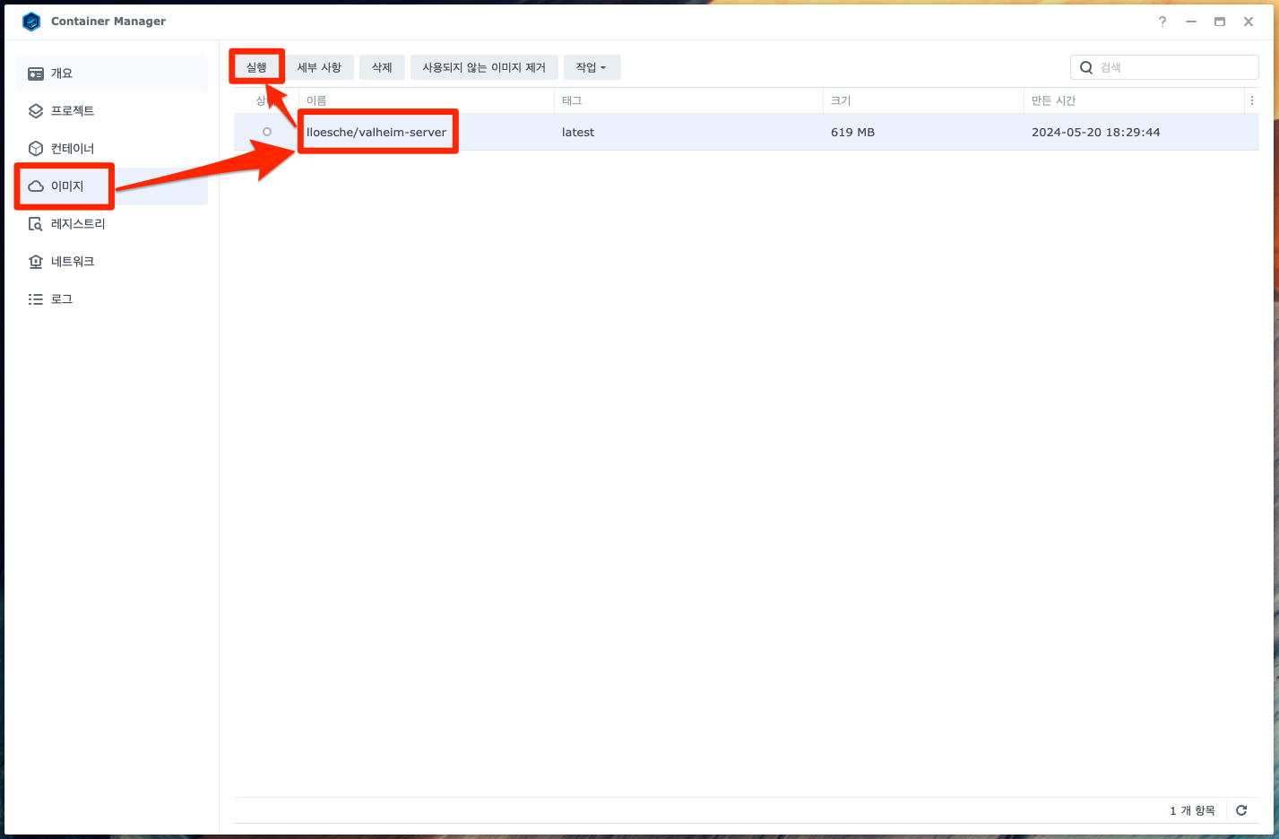 lloesche/valheim-server 이미지를 다운로드 받습니다