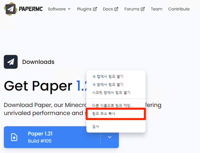 PaperMC 다운로드 링크 복사 : 링크이동