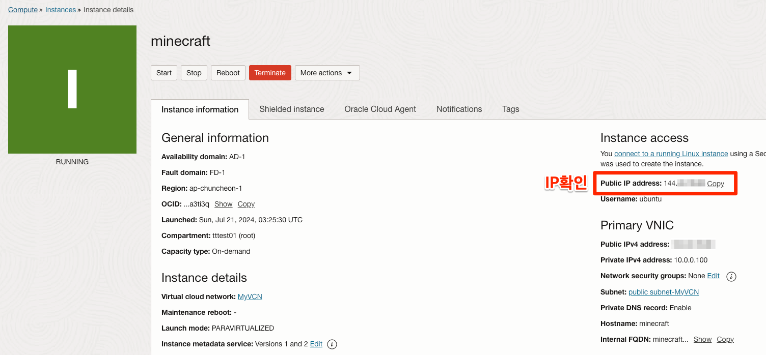 서버의 공인 IP 확인