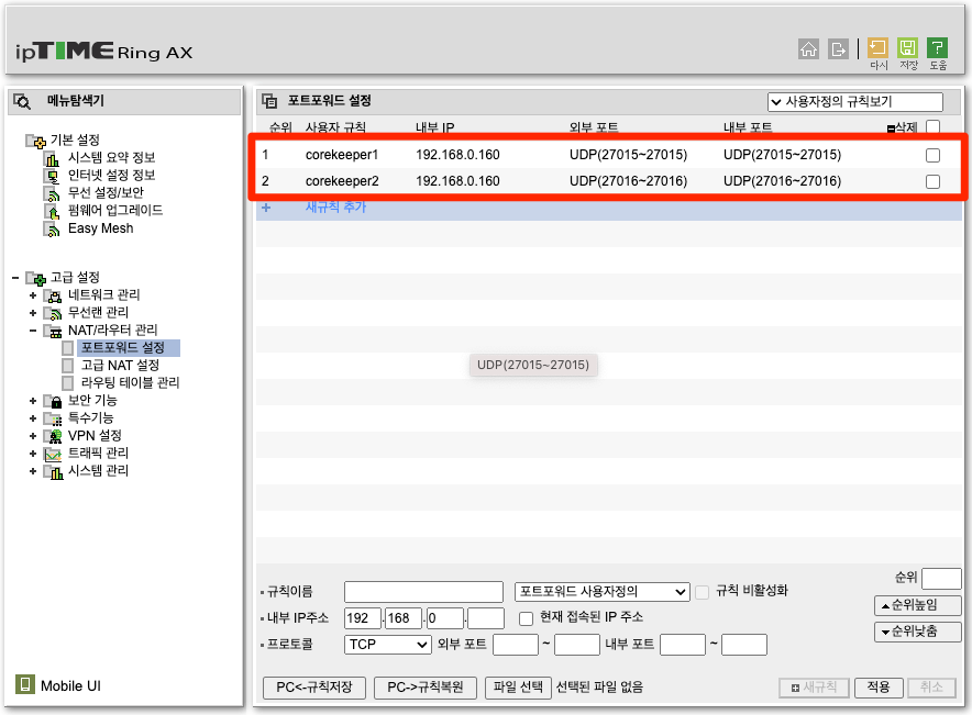 IPTime이 아닌 다른 공유기 브랜드별 포트포워딩 유튜브 자료