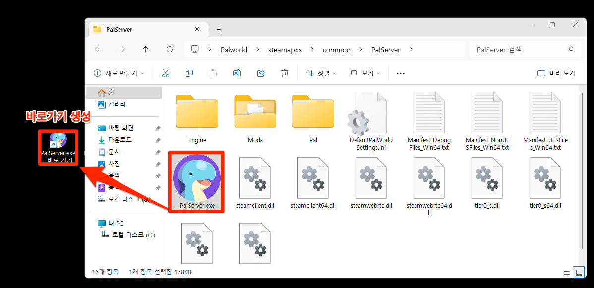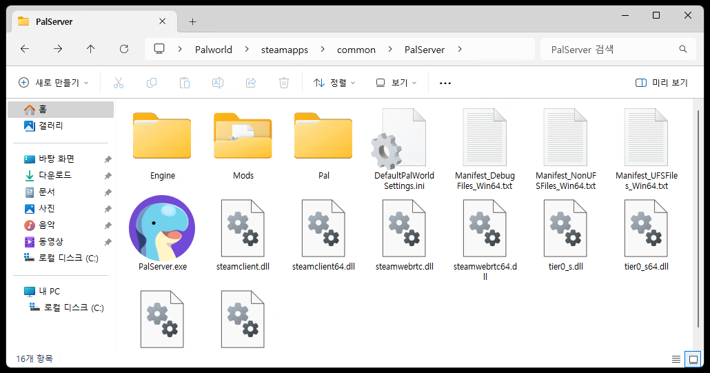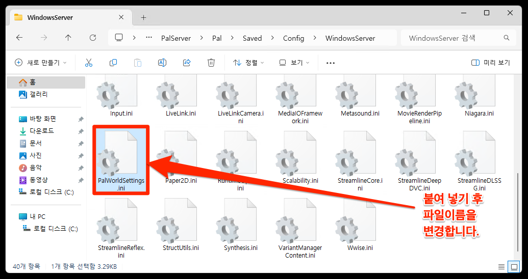 {스팀폴더}\steamapps\common\PalServer\Pal\Saved\Config\WindowsServer